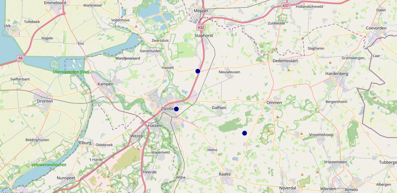 Hieronder staan alle stylingopties voor de punten, lijnen en vlakken die in dit GeoStyler kookboek worden toegelicht. Klik op de link om direct naar het bijbehorende code en uitleg te gaan.